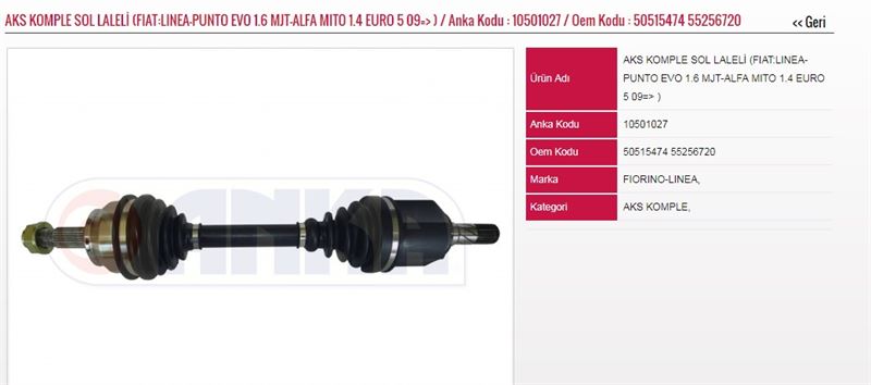 AKS KOMPLE L LALELİ 1.6 MJT-ALFA MITO 1.4 EURO 5 09=> YENİ FIAT LINEA PUNTO EVO MİTO (1 AD )