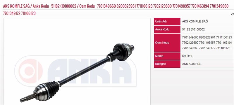 AKS KOMPLE SAĞ (10100002) RENAULT R9 (1 AD )