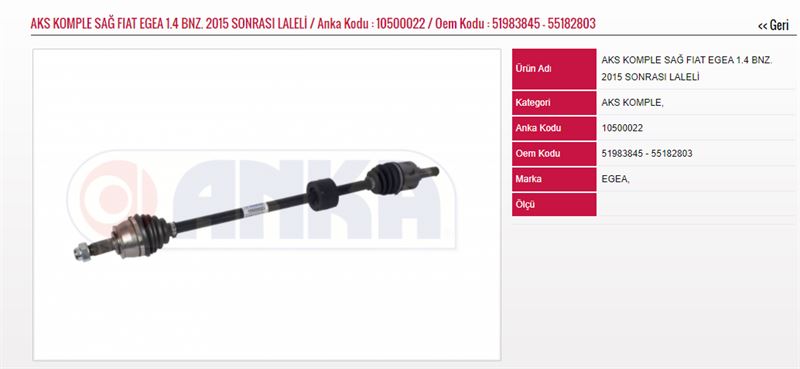 AKS KOMPLE SAĞ LALELİ (FIAT:EGEA 1.4 16V 15=> ) (1 AD )