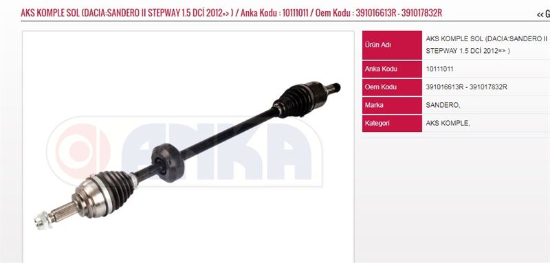 AKS KOMPLE SOL 1.5 DCİ 2012=> DACIA SANDERO II STEPWAY (1 AD )