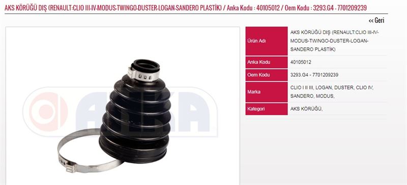 AKS KORUGU DIS CLIO III-IV-MODUS-TWINGO-DUSTER-LOGAN-SANDERO (1 AD )