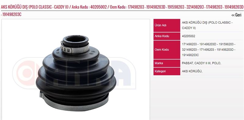 AKS KÖRÜĞÜ DIŞ VW CADDYII-POLO CLASIC (1 AD )