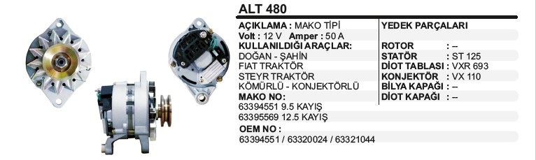 ALTERNATÖR 12V 75A FIAT DKŞ TRAKTÖR (394551)DOĞAN-ŞAHİN-STEYR TRAKTÖR-KÖMÜRLÜ-KONJEKTÖRLÜ MAKO TİP (1 AD )