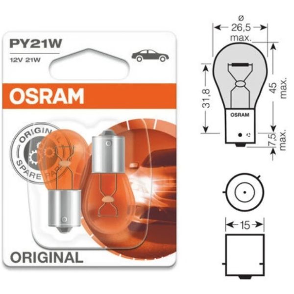 7507-02B 21W 12V BAU15S 10XBLI2 LF PY21W AMPUL 12V ORİGİNAL AMPUL (1 TK )