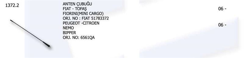 ANTEN ÇUBUĞU FIAT FIORINO (MINI KARGO) PEUGEOT BIPPER CITROEN NEMO (1 AD )