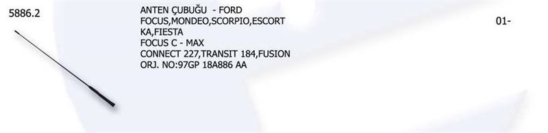 ANTEN ÇUBUĞU FORD TRANSIT 2001- FOCUS / C-MAX MONDEO ESCORT CONNECT 227 – KA FIESTA FORD (1 AD )