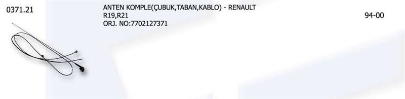ANTEN KOMPLE (ÇUBUK TABAN KABLO) RENAULT R19- R21 7702127371 (1 AD )