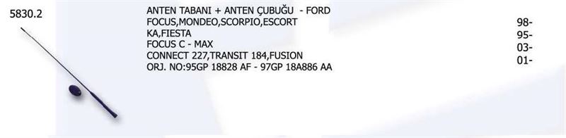 ANTEN TABANI + ANTEN ÇUBUĞU FORD FOCUS MONDEO SCORPIO ESCORT KA FIESTA FORD FOCUS C – MAX . . (1 AD )