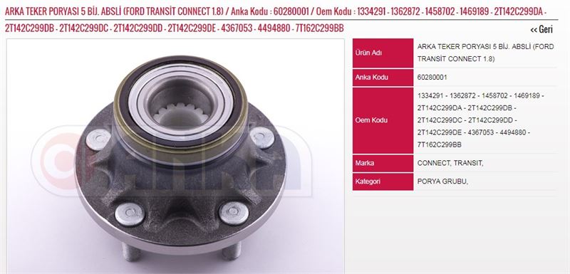 ARKA TEKER PORYASI 5 BİJ. ABSLİ 1.8 )(37X136X100) FORD TRANSIT CONNECT (1 AD )