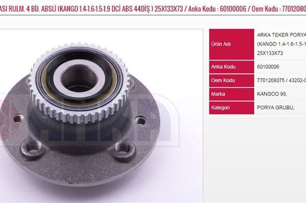 ARKA TEKER PORYASI RULM. 4 BİJ. ABSLİ 1.4-1.6-1.5-1.9 DCİ ABS 44DİŞ ) (25X133X73) RENAULT KANGOO (1 AD )