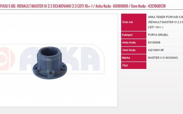 ARKA TEKER PORYASI 5 BİJON RENAULT MASTER III 2.3DCI OPEL MOVANO 10- (1 AD )