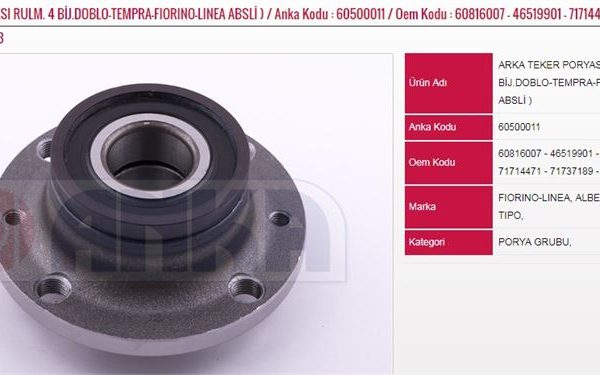 ARKA TEKER PORYASI RULM. 4 BİJ.ABSLİ (36X116X61) FIAT DOBLO 00-10-TEMPRA-FIORINO-LINEA (1 AD )