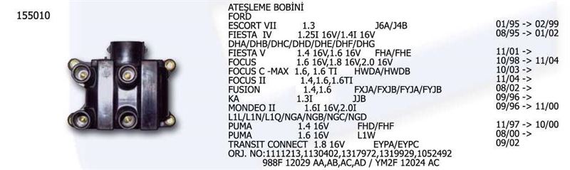 ATEŞLEME BOBİNİ FORD FOCUS 98 2005 FUSION MONDEO II ESCORT VII FIESTA (1-04B) (1 AD )