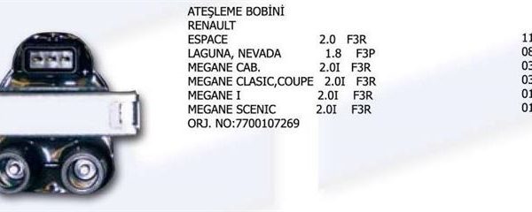 ATEŞLEME BOBİNİ RENAULT MEGANE I 96- LAGUNA 1.8 95-01 SCENIC 2.0 97-99 (1 AD )