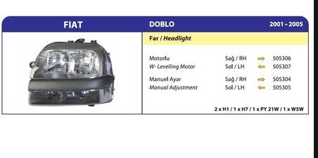 FAR SAĞ FIAT DOBLO II 2006-2010 MANUEL (1 AD )