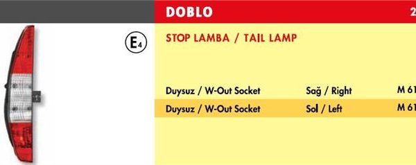 STOP LAMBA FIAT DOBLO / SAĞ (2002-2006) (DUYSUZ) (1 AD )