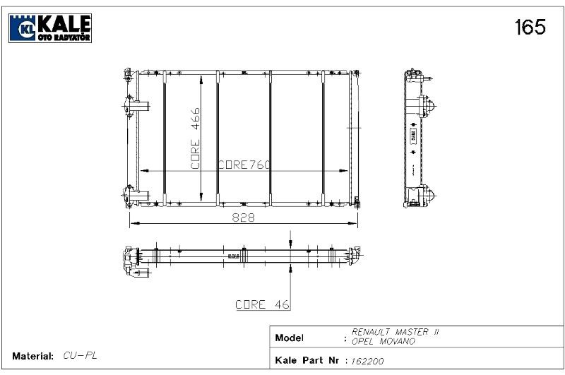 BAKIR RADYATÖR RENAULT MASTER 2.5 TDİ 2 SIRA CU+PL SİSTEM (1 AD )