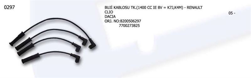 BUJİ KABLOSU TK.8200506297 RENAULT CLIO DACIA 770273825 (1 TK )