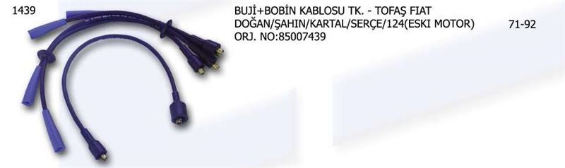 BUJİ ve BOBİN KAB.TK 85007439 FIAT DKŞ DOĞAN ŞAHİN KARTAL SERÇE 124 EM (1 TK )