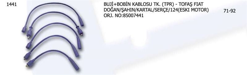 BUJİ ve BOBİN KABLOSU 85007441 FIAT DKŞ DOĞAN ŞAHİN KARTAL SERÇE 124EM (1 TK )