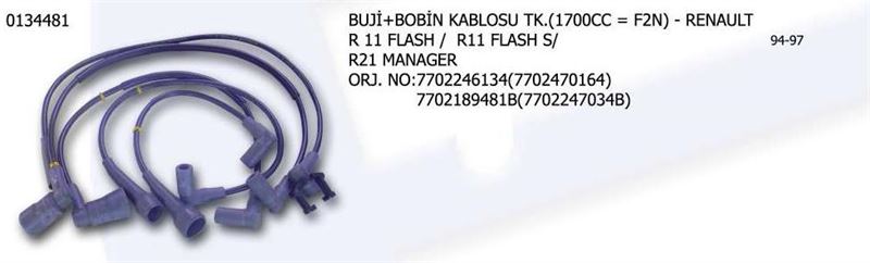 BUJİ ve BOBİN KABLOSU RENAULT R11 FLAŞ FLAŞ S / 21 770246134-7702470164 (1 TK )
