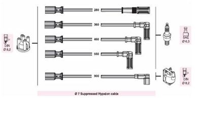 BUJİ ve BOBİN KABLOSU FIAT TEMPRA 1.4 TIPO 1.4 87-93 (BOBİN KAB. UZUN) (1 TK )