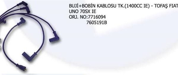 BUJİ ve BOBİN KABLOSU 1/4 İE FIAT UNO 70SXİE 7716094 7605191B (1 TK )