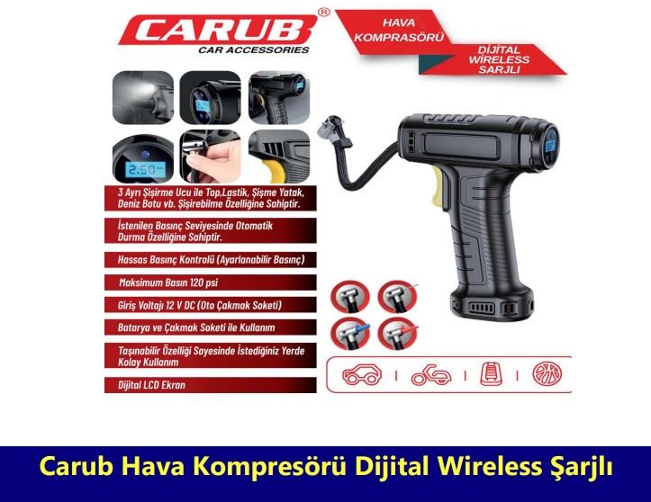 CARUB HAVA KOMPRESÖRÜ DİJİTAL WİRELESS ŞARJLI (1 AD )