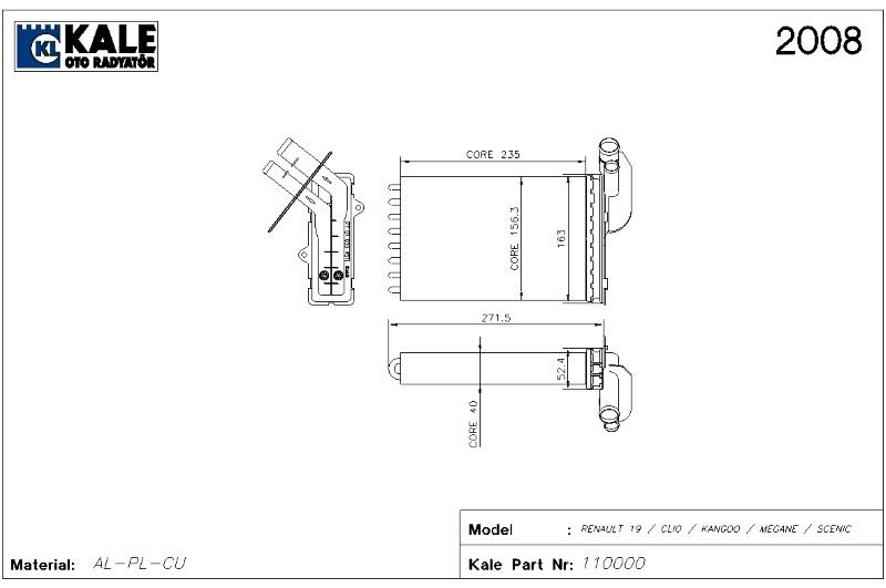 KALORİFER RADYATÖRÜ RENAULT R19 CLIO-KANGOO-MEGANE-SCENIC 2 SIRA BAKIR BORULU (1 AD )