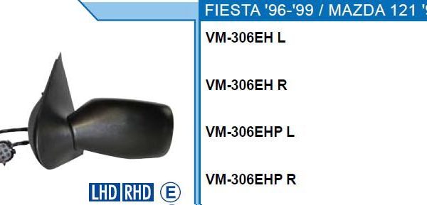 DİKİZ AYNASI SAĞ MAZDA 121 96- /D FORD FIESTA 96- ELEKTRİKLİ ISITMALI (1 AD )