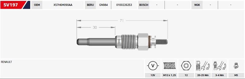 KIZDIRMA BUJİSİ 12V RENAULT MEGANE I (BA0/1): 1.9 TD (4 AD )