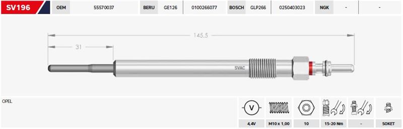KIZDIRMA BUJİSİ 4,4V OPEL ASTRA J-K 1.6 CDTi INSIGNIA B 1.6 CDTi MERIVA B 1.6 CDTI MOKKA / MOKKA X