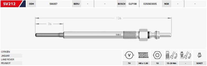 KIZDIRMA BUJİSİ 7V PEUGEOT 407 3.0 Hdi CITROËN C5 III 3.0 HDi C6 3.0 Hdi LAND ROVER DISCOVERY IV 3.0 TD RANGE ROVER III-IV (4 AD )