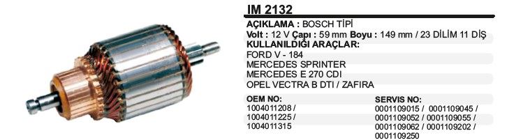 KOLLEKTÖR 12V 11 DİŞ P. J10 MERCEDES SPRINTER – E270 / OPEL VECTRA B- DTI ZAFIRA FORD V184 BOSCH TİP (1 AD )