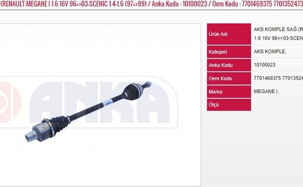 AKS KOMPLE SAĞ 1.4-1.6-1.9-2.0 96=> RENAULT MEGANE I (1 AD )