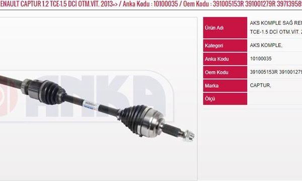 AKS KOMPLE SAĞ 1.2 TCE-1.5 DCİ OTM.VİT. 2013=> YENİ RENAULT CAPTUR (1 AD )