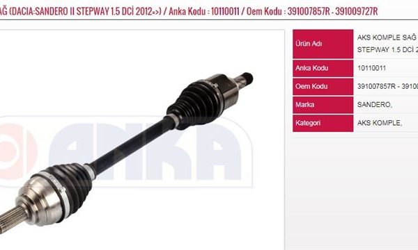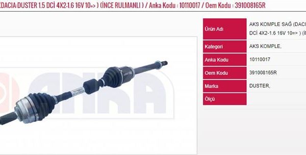 AKS KOMPLE SAĞ 1.5 DCİ 4×2-1.6 16V 10=> DACIA DUSTER (1 AD )