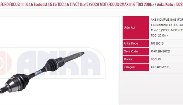 AKS KOMPLE SAĞ (FORD:FOCUS III 1.0-1.6 ECOBOOST-1.5-1.6 TDCİ-1.6 TI-VCT 11=>15 (SOCH MOT) (1 AD )