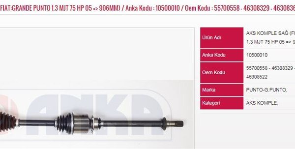 AKS KOMPLE SAĞ 1.3 MJT 75 HP 05=> 906MM FIAT GRANDE PUNTO (1 AD )