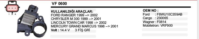 KONJEKTÖR FORD RANGER / CHRYSLER M300 14.4V GRİ (1 AD )