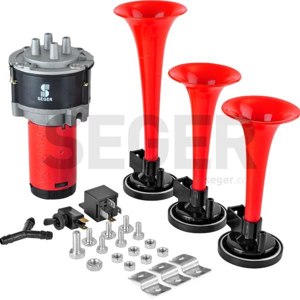 12V ÜÇLÜ KORNA KOMPRESÖRLÜ KIRMIZI BORULU (1 AD )