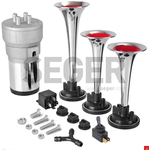 12V ÜÇLÜ KORNA KOMPRESÖRLÜ KROM BORULU (1 AD )