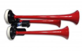 12V İKİLI DÜZ SES HAVALI KORNA KIRMIZI BORULU (1 AD )