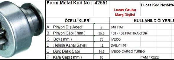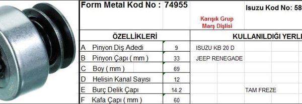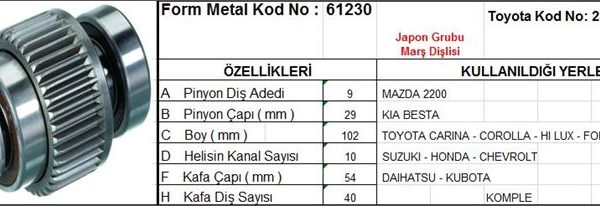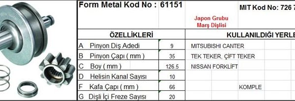 MARŞ DİŞLİSİ 9 DİŞ 12 KANAL ISUZU KB20D/JEEP RENEGADE/ HITACHI FORKLİFT İŞBORA TAM FREZE (1 AD )