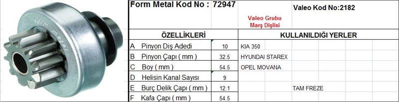 MARŞ DİŞLİSİ 10 DİŞ 9 KANAL VALEO TİPİ KIA 350 HYUNDAI STAREX OPEL MOVANO RENAULT MASTER TAM FREZE (1 AD )