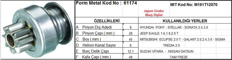 MARŞ DİŞLİSİ 8 DİŞ 8 KANAL JAPON TİPİ HYUNDAI ACCENT EXCEL SONATA NISSAN SUZUKI VITARA TAM FREZE (1 AD )