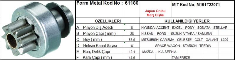 MARŞ DİŞLİSİ 8 DİŞ 8 KANAL JAPON TİPİ HYUNDAI ACCENT EXCEL SONATA NISSAN SUZUKI VITARA TAM FREZE DS=8 DKÇ=28 BOY=55,5 KS=8 BDÇ=12,1 GÇ=44,5 (1 AD )