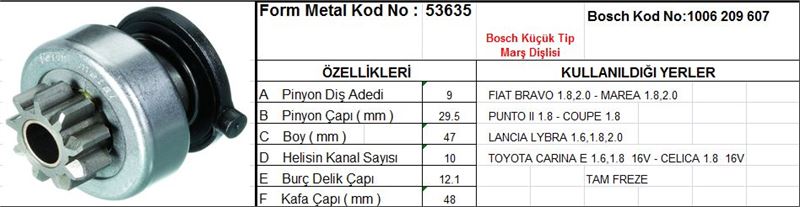 MARŞ DİŞLİSİ 9 DİŞ 10 KANAL BOSCH TİPİ FIAT BRAVO MAREA PUNTO TOYOTA CARINA CELICA TAM FREZE DS=9 DKÇ=29,6 BOY=49 KS=10 BDÇ=12,1 GÇ=48 (1 AD )