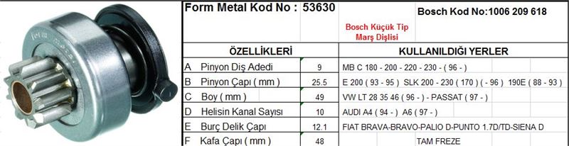 MARŞ DİŞLİSİ 9 DİŞ 10 KANAL BOSCH TİPİ MERCEDES C E200 VW LT PASSAT AUDI A4 FIAT PALIO TAM FREZE DS=9 DKÇ=25,8 BOY=49,5 KS=10 BDÇ=11 GÇ=46,5 (1 AD )