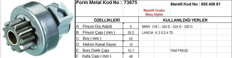 MARŞ DİŞLİSİ 9 DİŞ 10 KANAL MARELLI TİPİ BMW 318 TAM FREZE (1 AD )